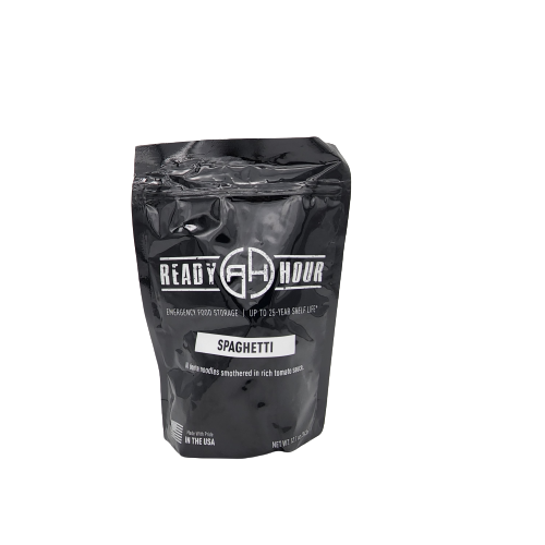 Have the convenience of Ready Hour Spaghetti on hand when you need it with our case pack pouches. Delicious tomato sauce with al dente noodles makes this the perfect dinner in the event of an emergency, or any time you want a quick easy meal. Top with tasty parmesan and serve with garlic bread for a complete family meal.