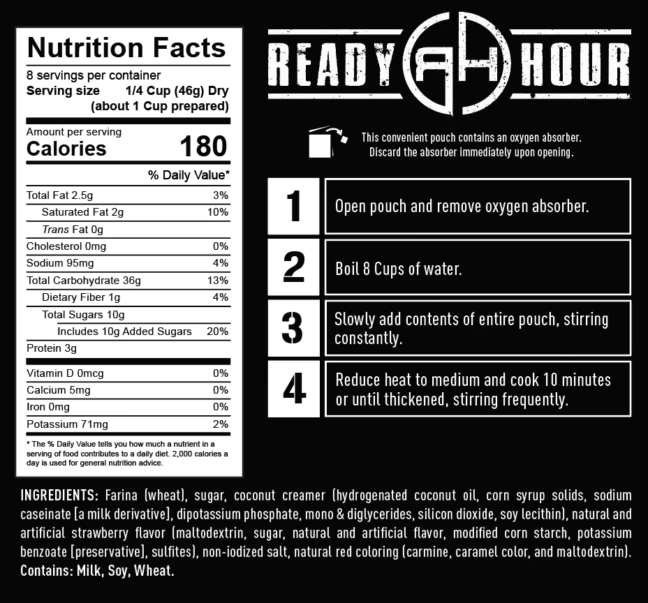 When times are tough during a natural disaster or emergency situation, you want to have a product like this on hand to provide your body the vitamins, calories and minerals it needs to survive. Your entire family will love the taste of this hot and creamy cereal.